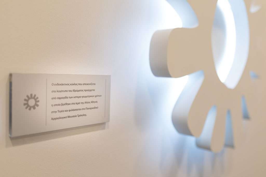 Το έμβλημα του Ιδρύματος φέρει παράσταση ενδεκάκτινου κύκλου και είναι αντίγραφο σφραγίδας των υστερο-γεωμετρικών χρόνων, η οποία προέρχεται από το Ιερό της Αλέας Αθηνάς στην Τεγέα και φυλάσσεται στο Παναρκαδικό Αρχαιολογικό Μουσείο Τρίπολης.